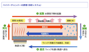 ベイパーチャンバーの動作は、以下の流れで行われます。