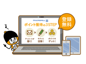 マクロミルは、企業の市場調査に協力することで報酬がもらえる仕組みです。